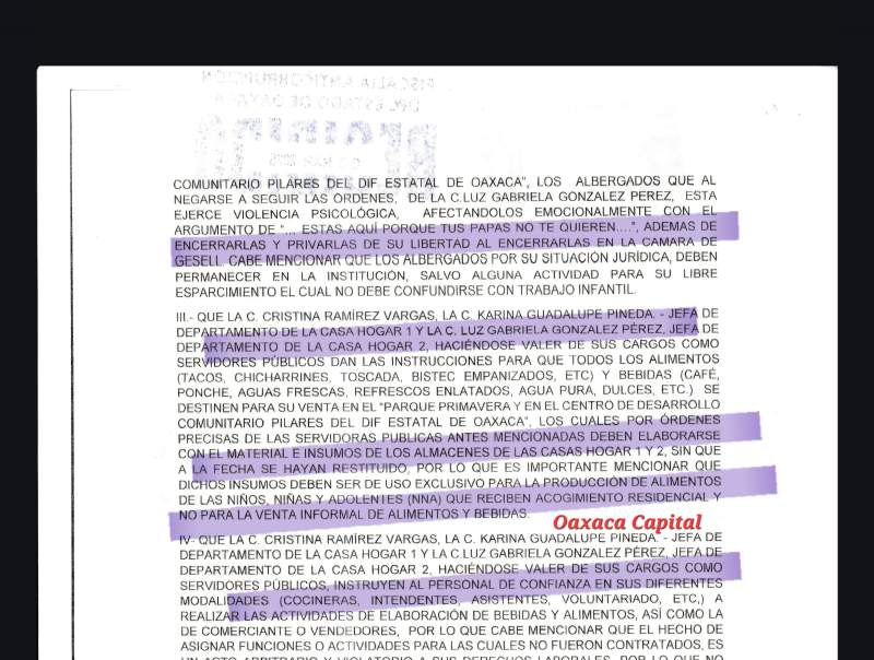 Documentos fechados en enero y marzo de 2025, recibidos por la Defensoría de los Derechos Humanos del Pueblo de Oaxaca (DDHPO) y la Fiscalía Anticorrupción, revelan que el organismo encargado de proteger a la niñez se convirtió en una entidad de “servidumbre y negocios privados”.